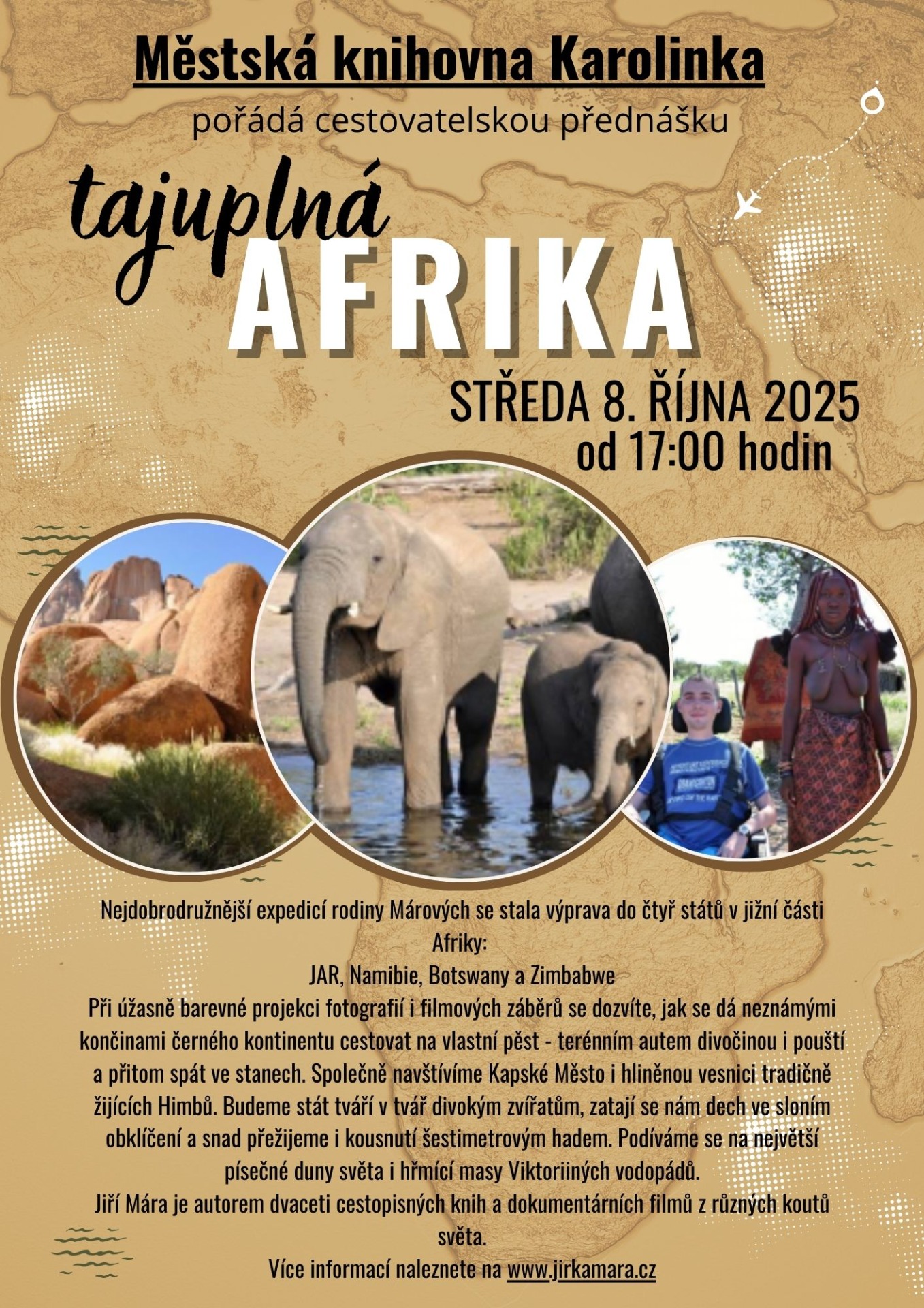 Cestovatelské kreslení s Adolfem Dudkem - akce je určena pro žáky 1. - 4. třídy ZŠ Karolinka,